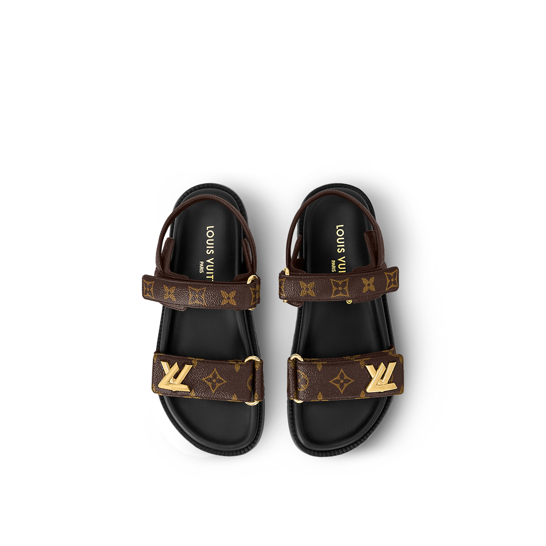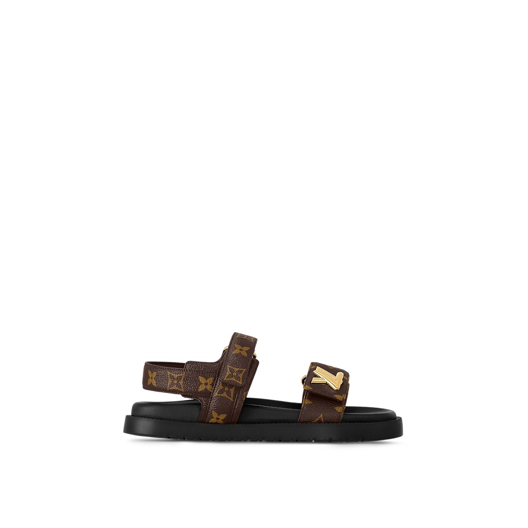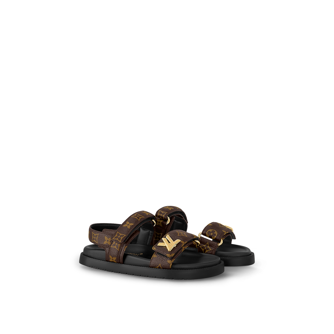 Cette sandale plate confort LV Sunset est revisitée cette saison dans la toile Monogram emblématique de Louis Vuitton. Proposant une version luxueuse d'un indispensable confortable, ce soulier se distingue par sa semelle intérieure anatomique et ses brides matelassées dotées d'attaches velcro astucieuses. Celle du dessus est agrémentée d'un accessoire LV doré qui rappelle le sac Twist incontournable.